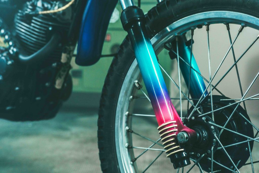 Während dieser Zeit entstand die Lackierung örtlich getrennt von der Basis. Motorrad und lackierte Teile sahen sich erst wieder, als alles fertig war. Und was soll man sagen, vaim.me hat uns mit den Farben aus den Socken gehauen. Eine wahnsinnige Arbeit bis in die letzte Ecke. Wer die XT sieht, sollte unbedingt einen Blick beispielsweise unter das Schutzblech werfen und sich von diesem Wahnsinn überzeugen.